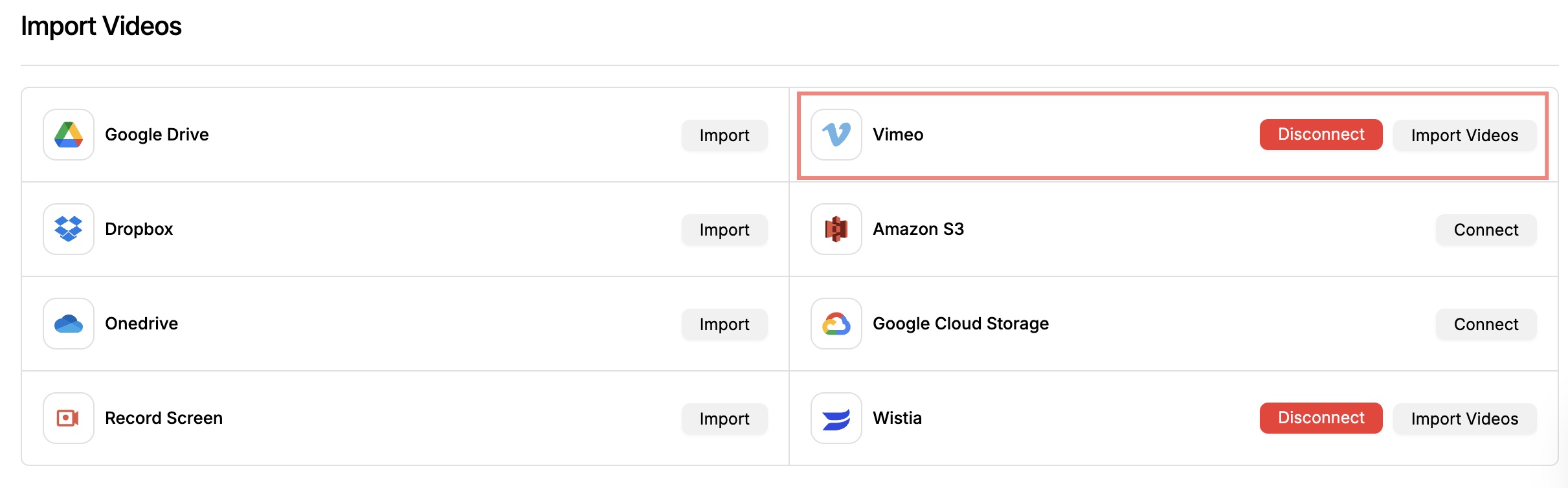 Now head over to Import Page. You will find Vimeo and click on connect.