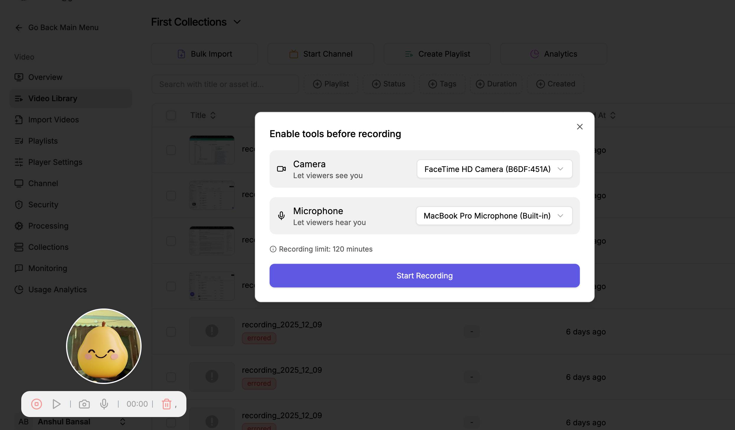 Recording your videos on Gumlet is the easiest way to create content. We record your screen, camera, and speech to produce a video that you can embed.